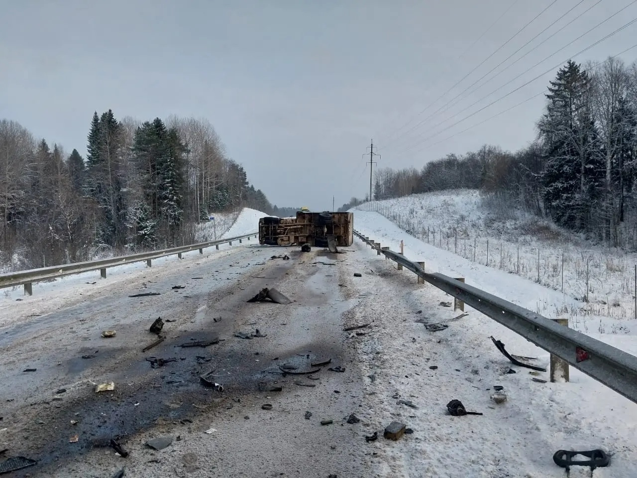 Дорожно-транспортное происшествие произошло несколько часов назад на восьмом километре подъездной дороги к Кириллову. По предварительной информации, столкнулись «Газель» и грузовик. От удара последний опрокинулся на бок и перегородил проезжую часть.