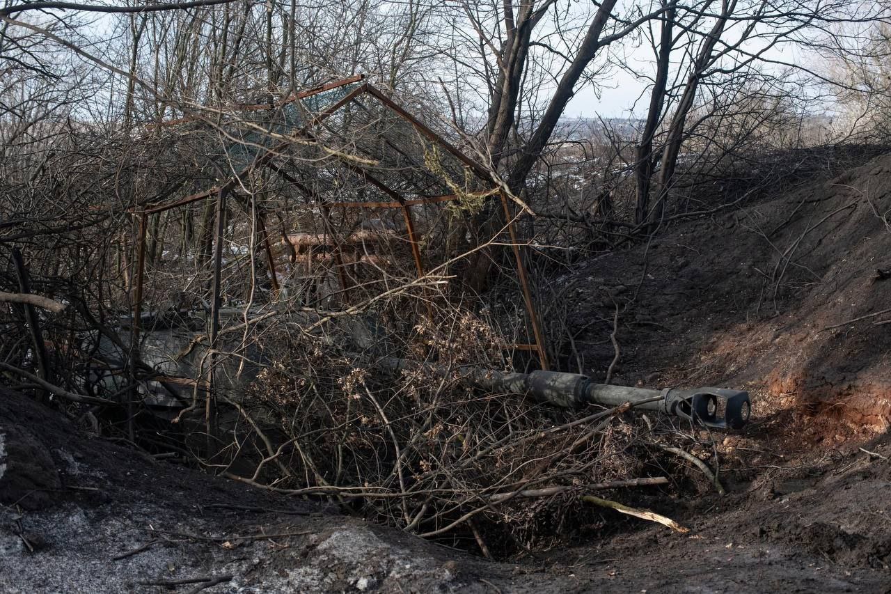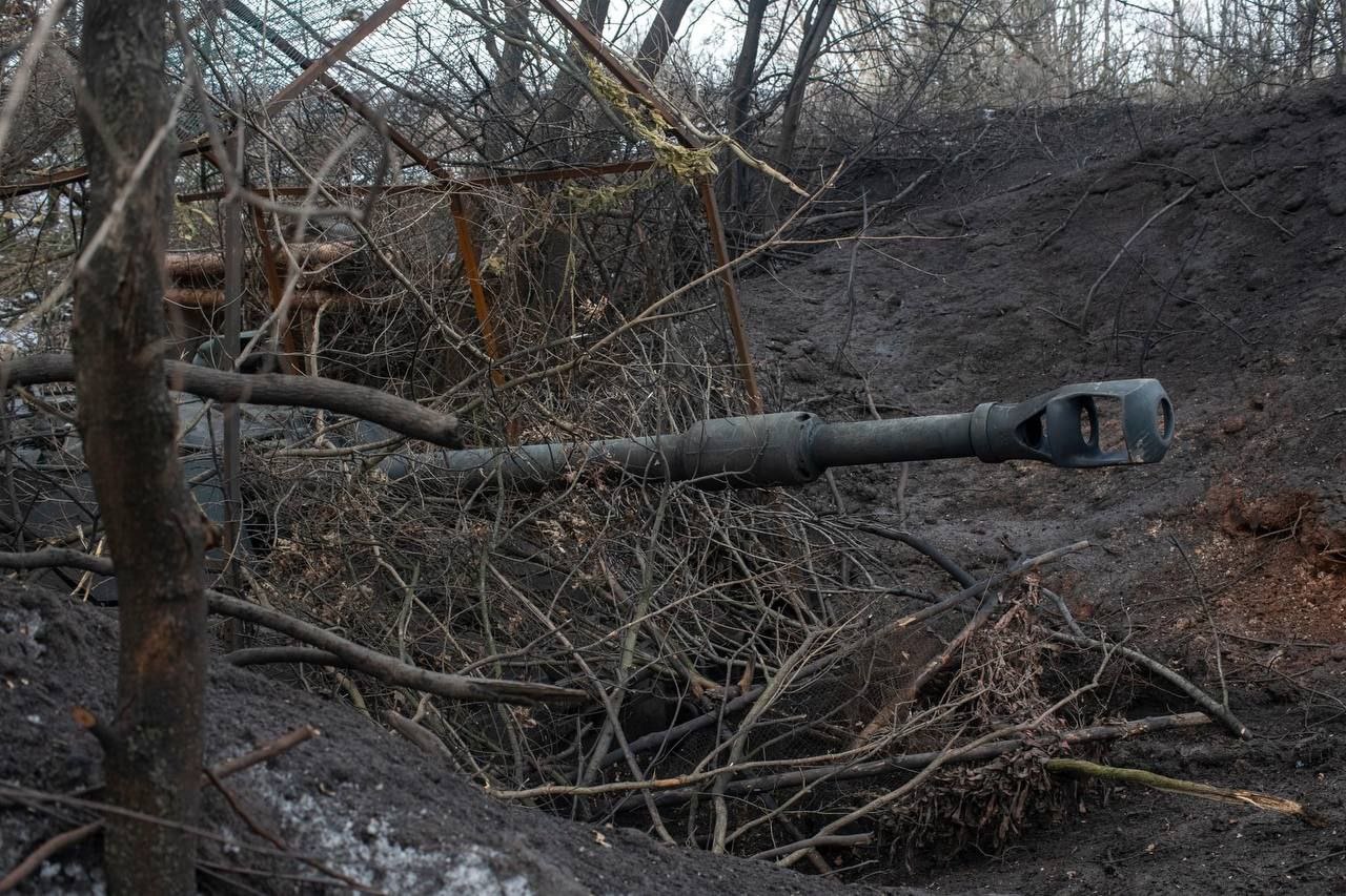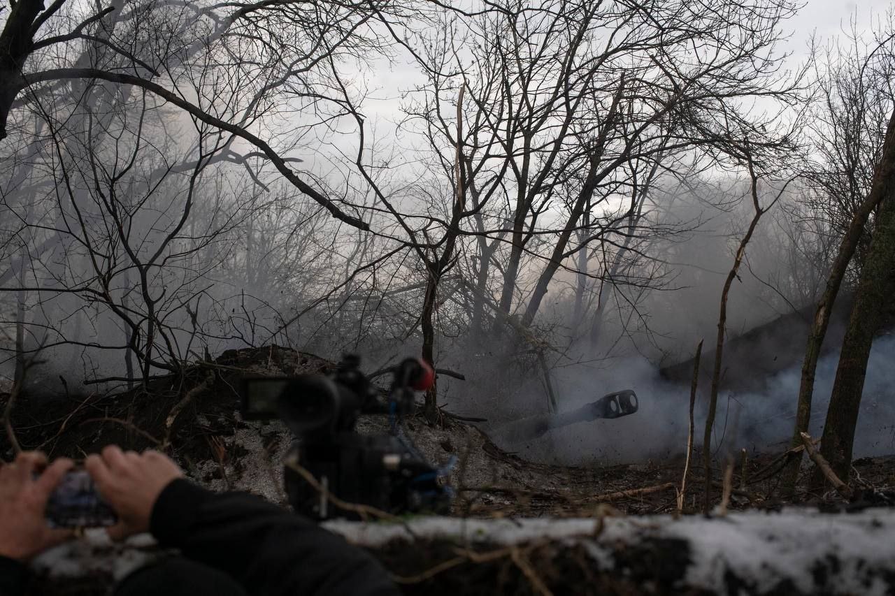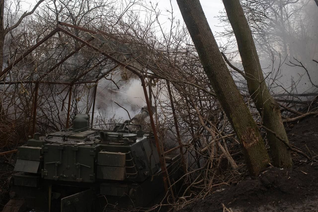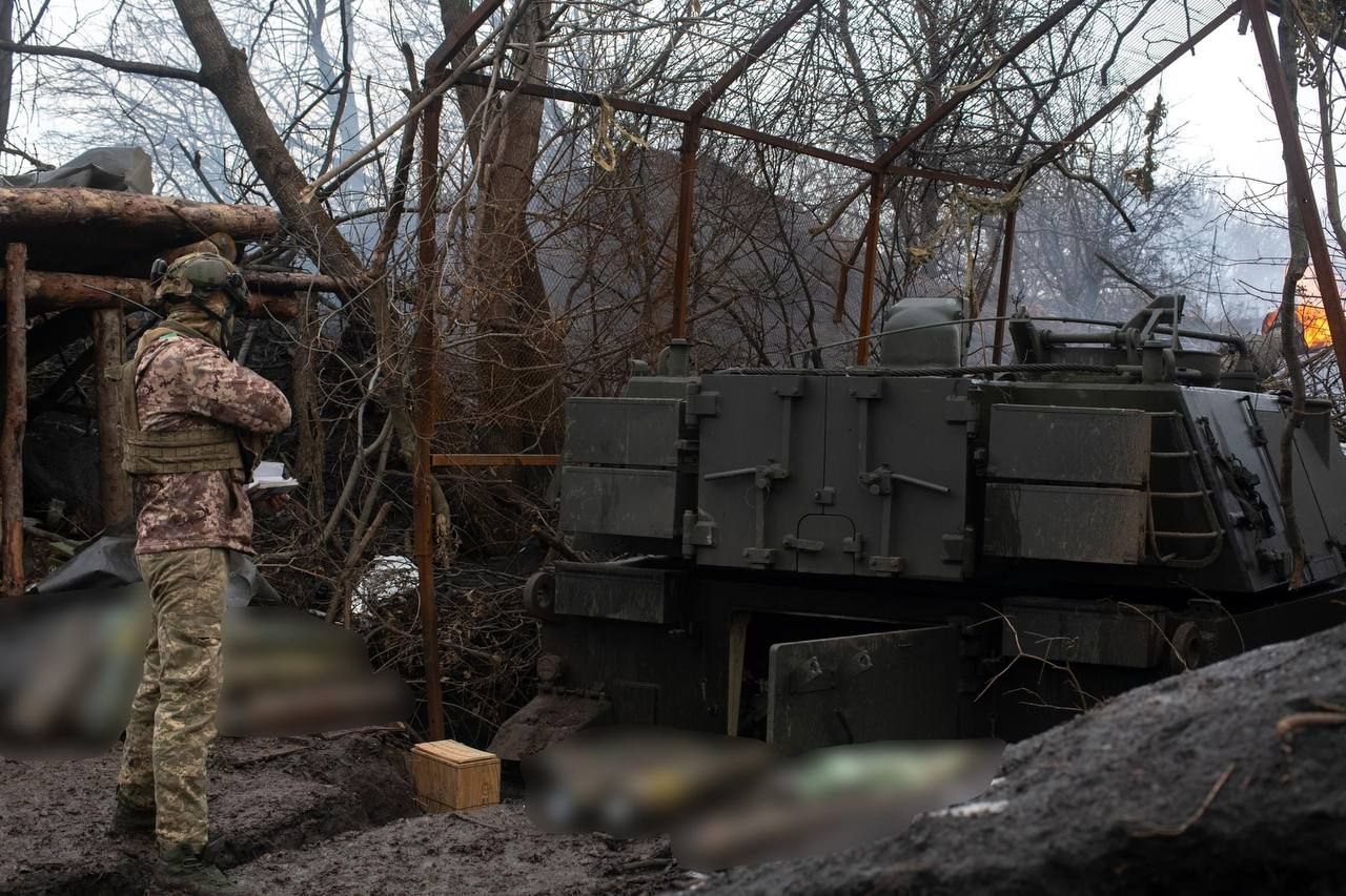 Расчет САУ M109 украинской армии на замаскированной позиции.