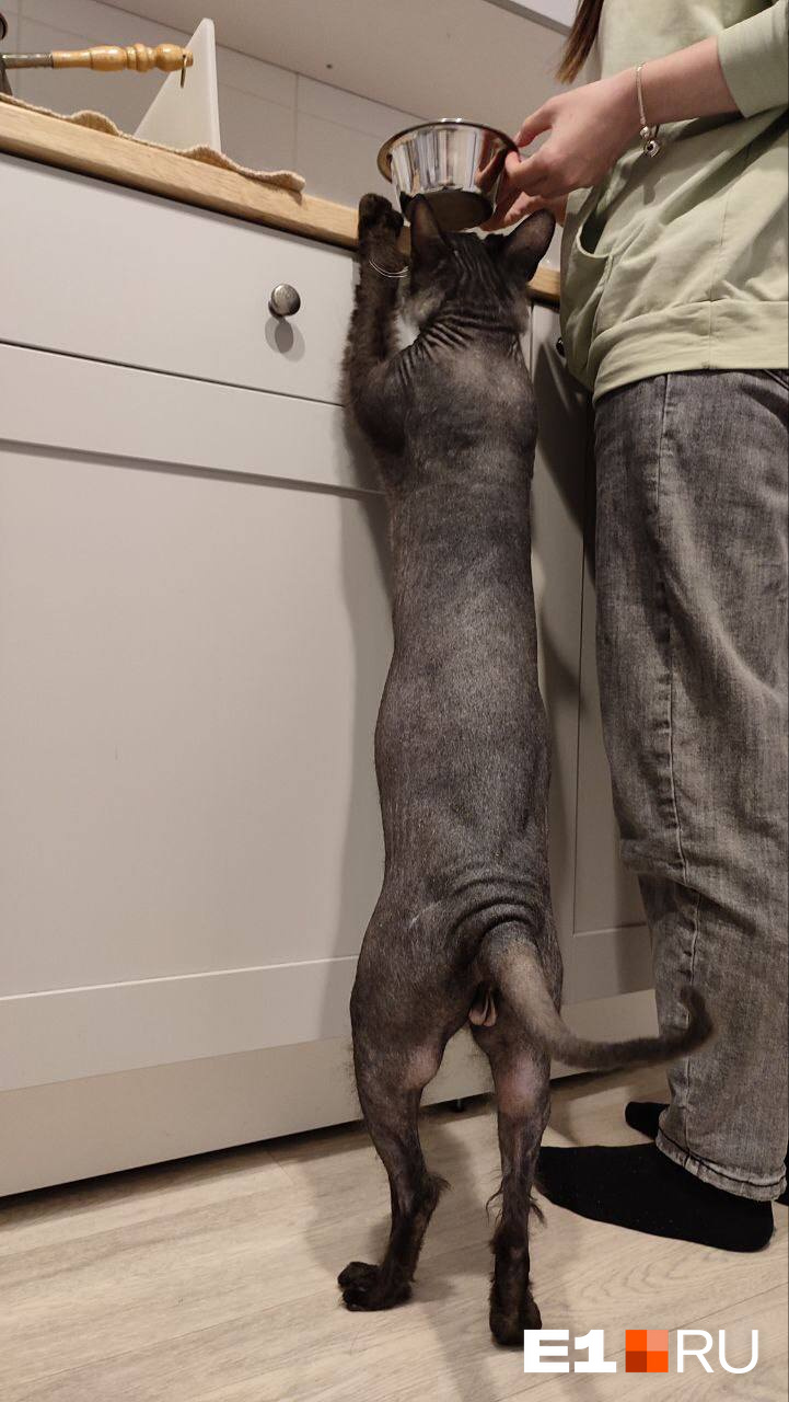 — Моя младшая сестра хотела кота, но мама не хотела заводить из-за шерсти, в итоге пришли к данной породе. Нашли объявление о продаже сфинксов, договорились, забрали двухмесячного. Но никак не готовились в плане того, что ничего не изучали, что за порода. Когда привезли домой, кормили из шприца молочком. Когда вырос — давали куриную грудку, супчики, корм. Когда он стал подрастать, тогда всё и началось…