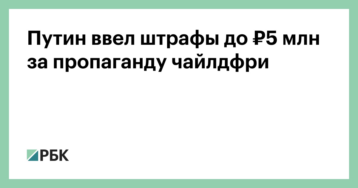 Президент России Владимир Путин подписал законопроект, предусматривающий штрафы за «пропаганду чайлдфри» в интернете, СМИ, кино и рекламе, документ опубликован на портале правовых актов.