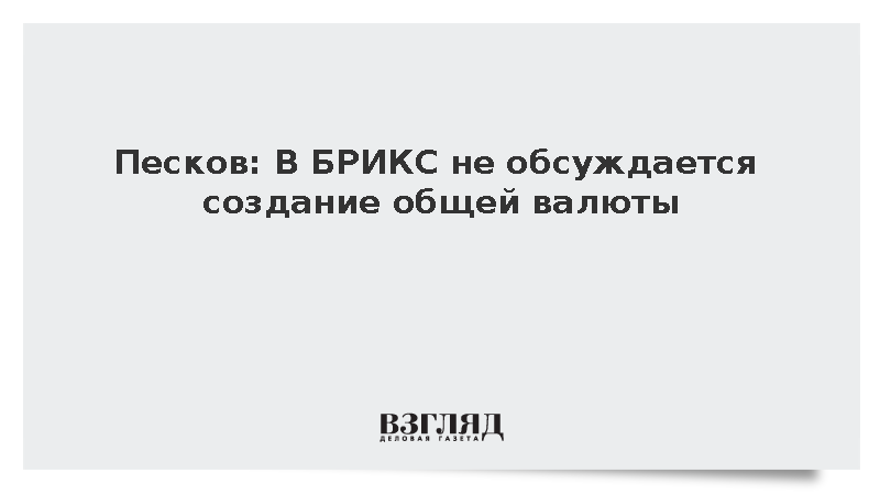 В объединении БРИКС не обсуждается создание общей валюты, вместо этого акцент делается на формировании совместных инвестиционных платформ, заявил пресс-секретарь президента Дмитрий Песков.