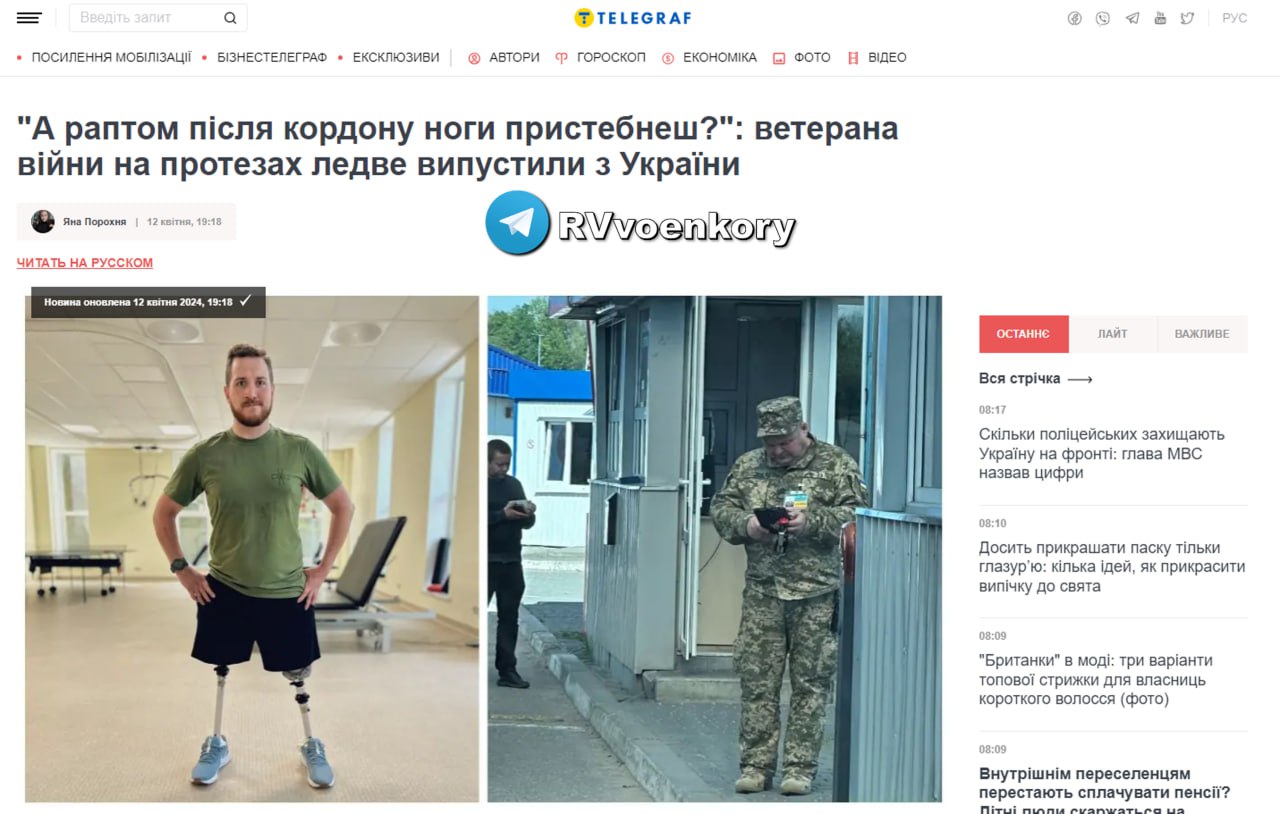 Боевик ВСУ с двумя ампутированными конечностями пытался выехать из Украины.