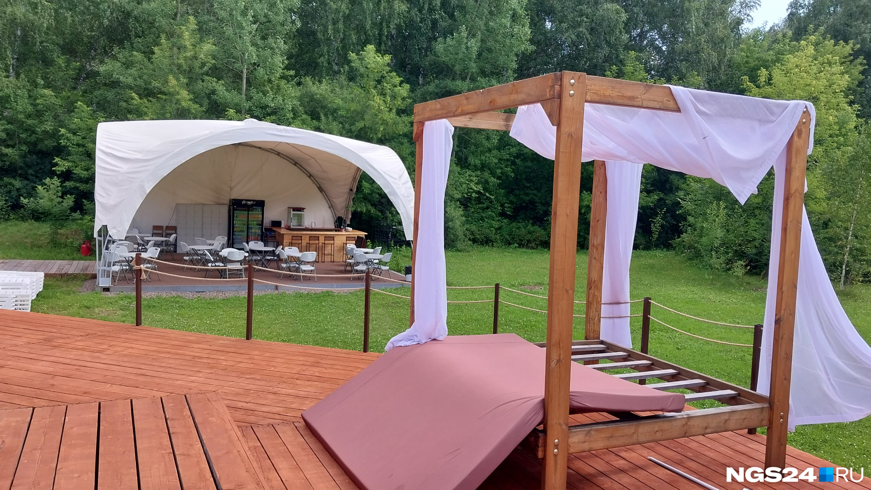 Недавно в Красноярске заработал еще один летний бассейн. Он находится рядом с детским лагерем «Гренада» недалеко от большой лестницы, ведущей на Торгашинский хребет. Называется «Гренада парк».