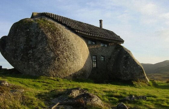 Дом, сделанный в камне, это всегда очень оригинальное и красивое строение, поскольку такой природный материал уже уникален по своей форме, цвету и текстуре, искусственно повторить подобный шедевр будет сложно. В Португалии находится дом, построенный ещё в восьмидесятых, стены которого состоят из огромных валунов. Рядом с домом располагается природное углубление в земле, которое обустроили под бассейн. Сейчас дом отдан под здание музея из-за большого наплыва туристов, в нем поставлены пуленепробиваемые окна и высокий забор. Высота потолков составляет почти два с половиной метра, имеется большой камин. Однако, внутри дом небольшой, на первом этаже расположены лишь прихожая, кухня и совсем небольшая гостиная, а на втором спальня. Все стены внутри неровные, имеют форму камней, которые не удалось подточить, потому и вся мебель либо сделана на заказ, либо прилегает неплотно.