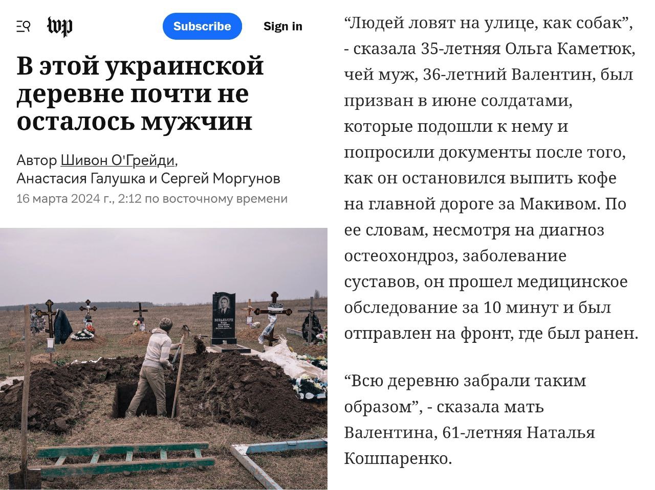 "Ловят людей на улице как собак, в деревне не осталось мужчин", — репортаж кремлёвских пропагандистов Washington Post о мобилизации на Украине.