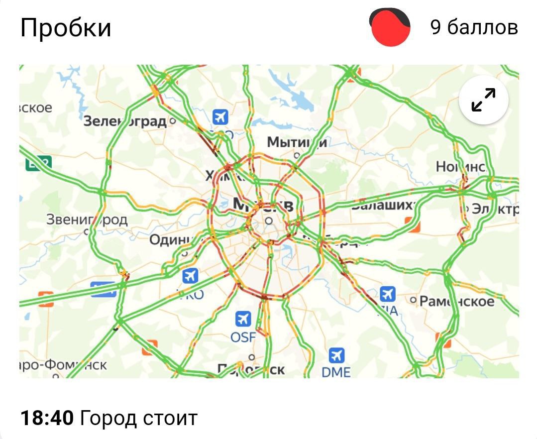 привёл к девятибалльным пробкам в Москве. По прогнозу, он продлится до завтра.