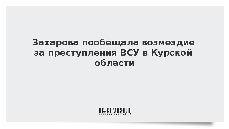 Официальный представитель МИД России Мария Захарова заявила, что Запад не сможет скрыть преступления ВСУ в Курской области, и все виновные понесут заслуженное наказание.