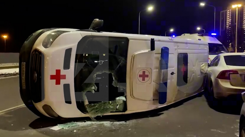 Бригада скорой помощи в момент аварии ехала на вызов. В машине не было пациентов, а сотрудники не пострадали. Движение на дороге частично перекрыли, на месте происшествия работают экстренные службы.