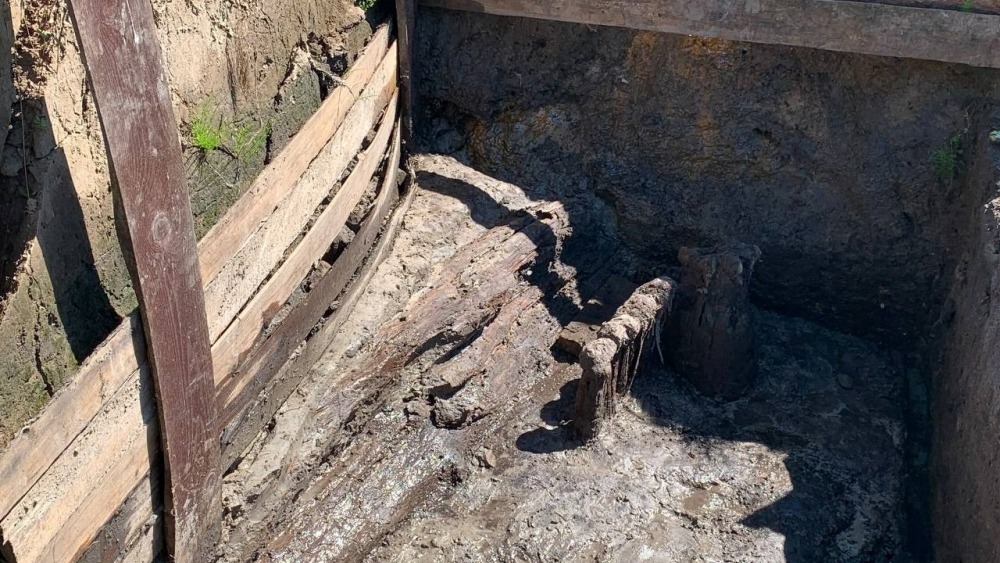 Именно в этих наиболее ранних слоях раскопа несколько лет назад были впервые обнаружены структуры, связанные с портовой жизнью древнего Гнёздова. Простейшие конструкции — настилы — являли собой элементы благоустройства берега и в древности служили для подхода к воде. Сооружение подобных «твердей» из досок или жердей – вполне обычное явление для речных портовых зон Европы «эпохи викингов». Кроме настилов, здесь же, на берегу озера Бездонка, бывшего внутренней гаванью древнего поселения, была найдена целая серия корабельных деталей (шпангоут, весла, уключины).