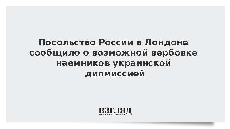 Посольство России в Лондоне сообщило, что украинская дипмиссия может быть задействована в вербовке наемников для участия в конфликте против России.