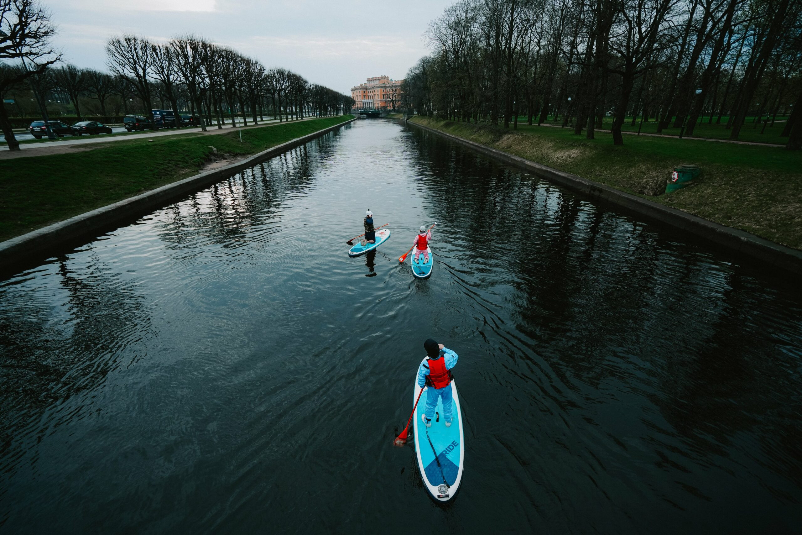 Знакомство с Санкт-Петербургом не обошлось без водных путешествий. Участники медиаэкспедиции проплыли по Малой Невке и научились поднимать паруса на яхте. Путешествие по водам Северной столицы продолжилось прогулкой по каналам на сапах.
