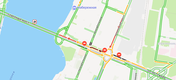 Пробка образовалась на улице Остужева и Ленинском проспекте в сторону правого берега.