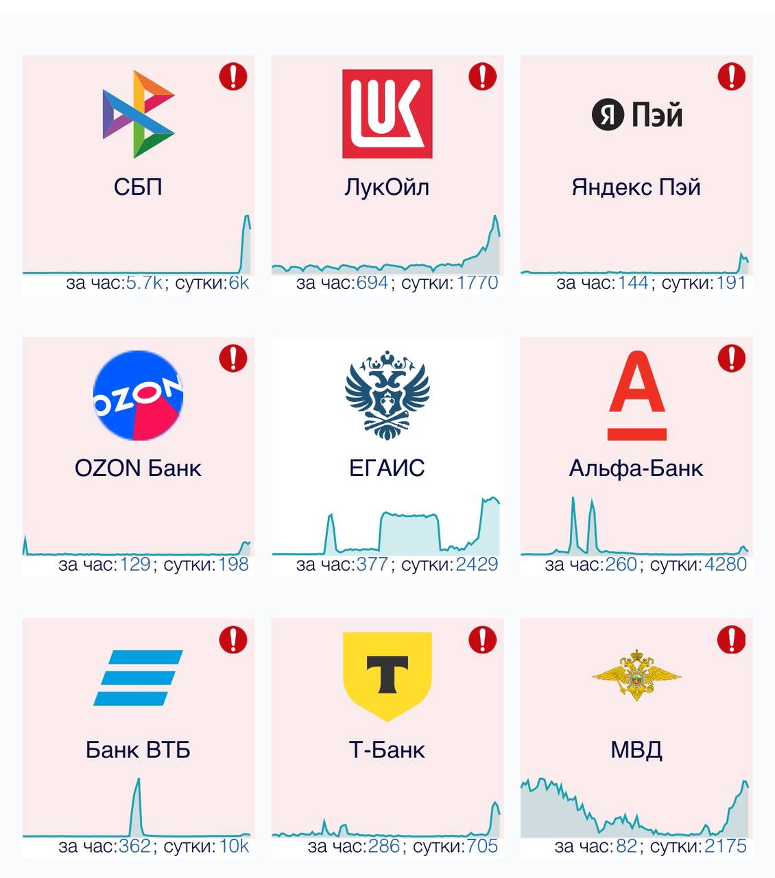 Проблемы у ВТБ, Т-Банка, Альфа-Банка, Сбера, Ozon банка, Яндекс Пэй, СБП.
