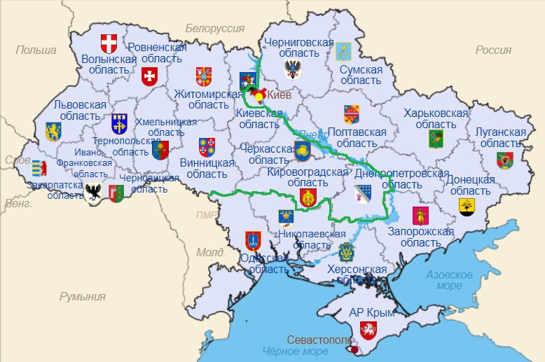 4.С учётом «сегодняшних реалий на земле» более правильной многим сейчас видится Зеленая линия границы на Карте 2, проходящая по Днепру и захватывающая город Киев и южные области Украины, включая Одессу. За данный вариант - около 82 % населения РФ по опросам по телефону и в Телеграм. Эта конфигурация линии разграничения, по их мнению, могла бы стать неплохой основой границы будущей Восточной Украины. Но стратегически такую границу будет очень сложно охранять от буйного соседа. А то, что сосед будет буйным, сомнений нет. Даже если поставить туда Медведчука. Ибо суть "украинства" с государственностью хохлов - русофобна по природе.