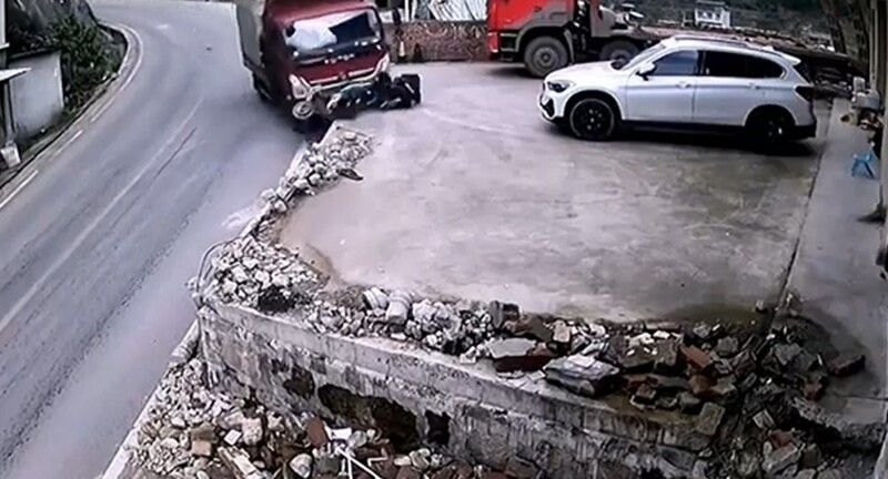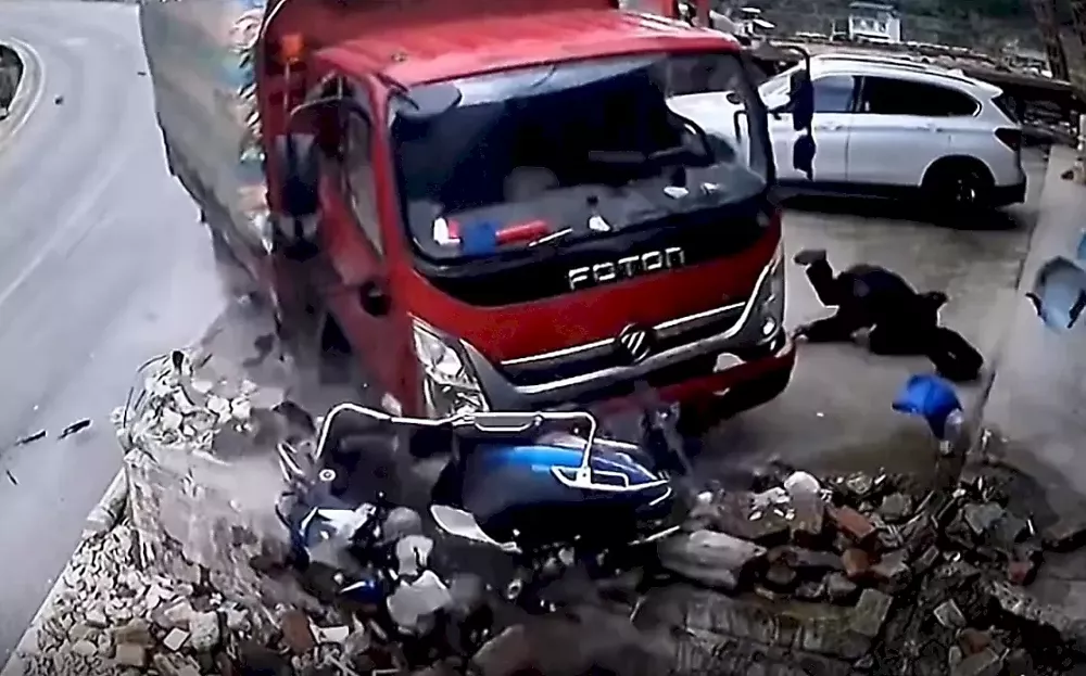 Грузовик, перевозивший комбикорм, снёс со своего пути электрический скутер, перевернулся и врезался в жилой дом. Прибывшие на место происшествия полицейские и медики совместными усилиями вытащили водителя грузовика из кабины.По информации СМИ, оба участника аварийной ситуации отделалась не опасными для жизни травмами. Причины ДТП устанавливаются.