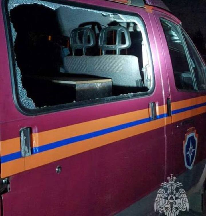 В ведомстве отметили, что все пострадавшие отказались от госпитализации и сразу после снижения опасности возобновили свою работу. Во время атаки также повреждения получили штабной автомобиль и автоцистерна