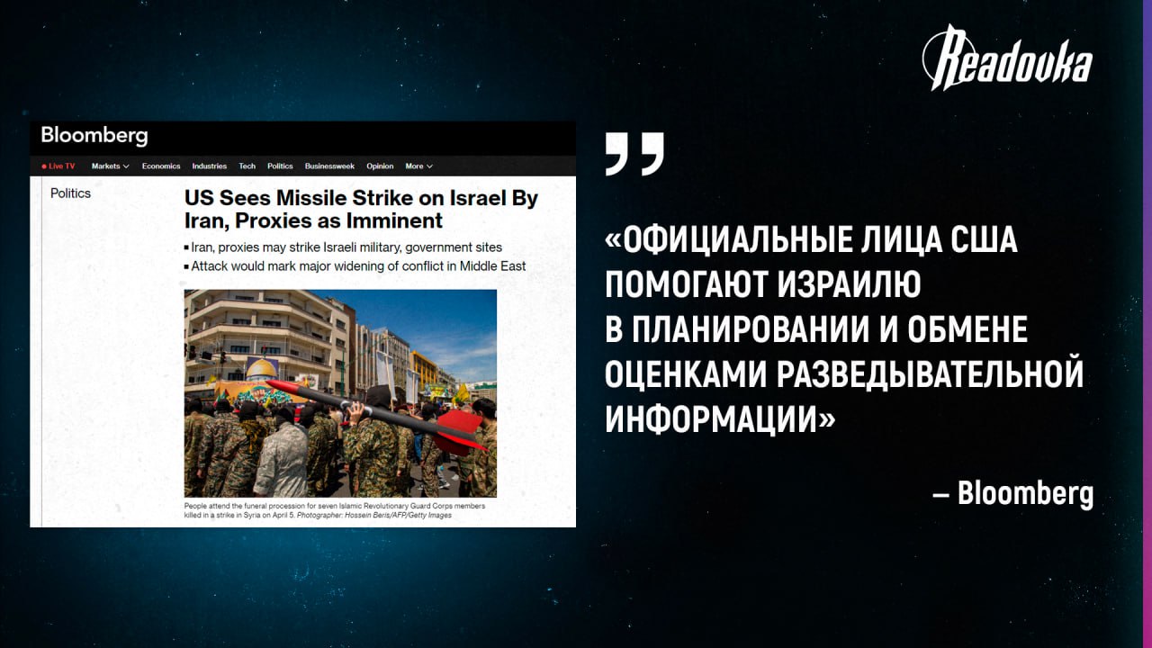 Коллективный Запад считает, что крупные ракетные удары или атаки БПЛА со стороны Ирана или его «доверенных лиц» по военным объектам в Израиле неизбежны, сообщает Bloomberg. Агентство ссылается на сотрудников американской администрации, которые знакомы с разведданными. Атака ознаменует серьезное расширение конфликта на Ближнем Востоке, и даже его переквалификацию в полномасштабную войну. Потенциальное нападение, предположительно, с использованием высокоточных ракет и произойдет в ближайшие дни.
