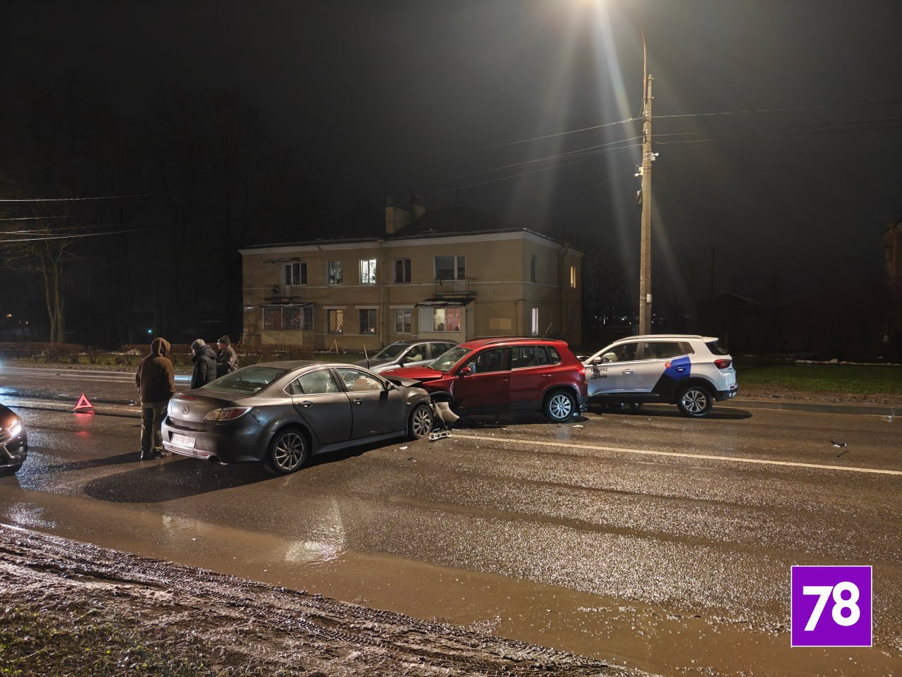 Больше 20 автобусов застряли на проспекте Ленина в Красном Селе из-за ДТП. Столкновение двух легковушек попало на видео