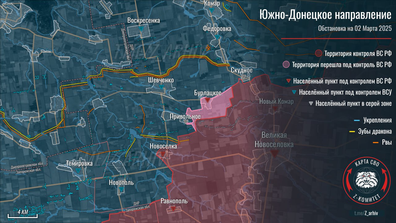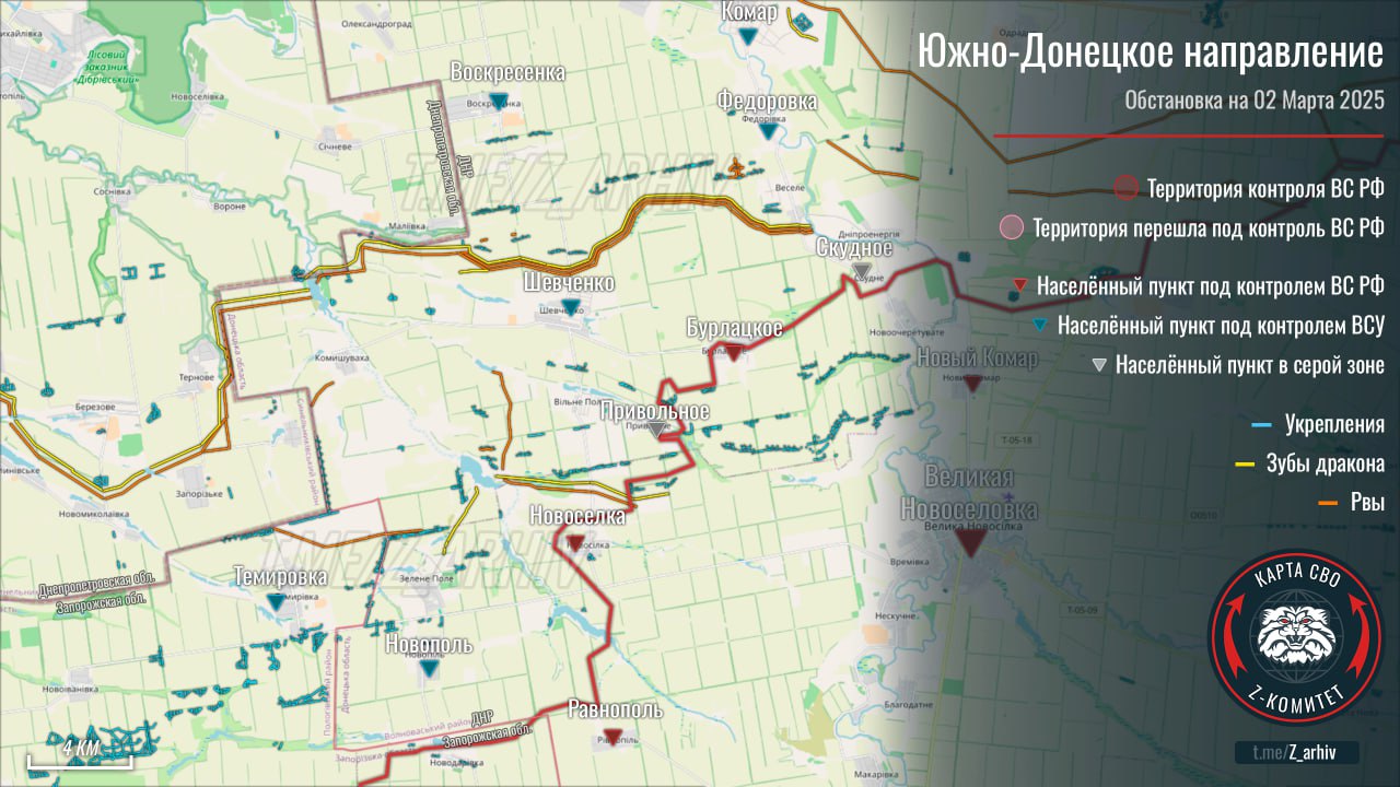 Зона продвижения бойцов ВС РФ в квадрате Бурлацкого на Южно-Донецком направлении.