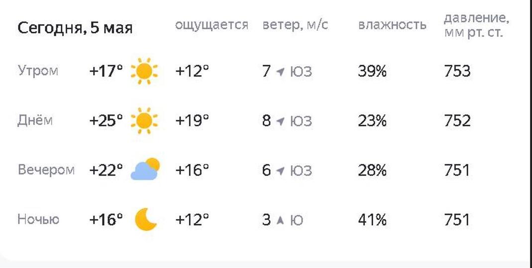 Следующий день, вторник, 6 мая, принесет переменчивое небо с эпизодическими дождями. Ветер поменяет свое направление на северо-западное, сохранив прежнюю силу.