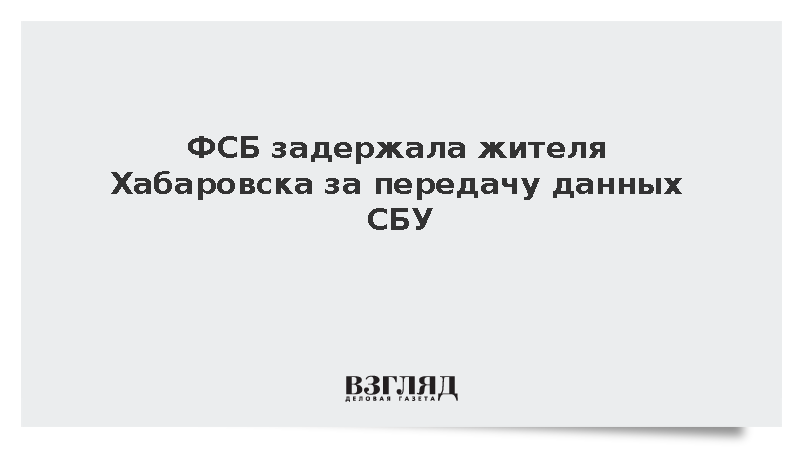 Сотрудники правоохранительных органов в Хабаровске задержали местного жителя по подозрению в шпионаже, передает ТАСС. По информации УФСБ по Хабаровскому краю, задержанный передавал сведения представителям Службы безопасности Украины через интернет.