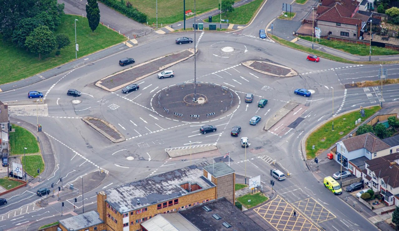 Она находится в английском городе Суиндон и состоит из семи колец, по которым машины едут и по часовой стрелке, и против. Каждое кольцо ведёт к своему выезду, и приезжие теряются уже через несколько секунд.