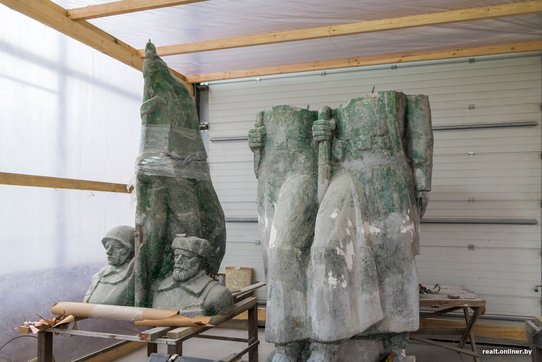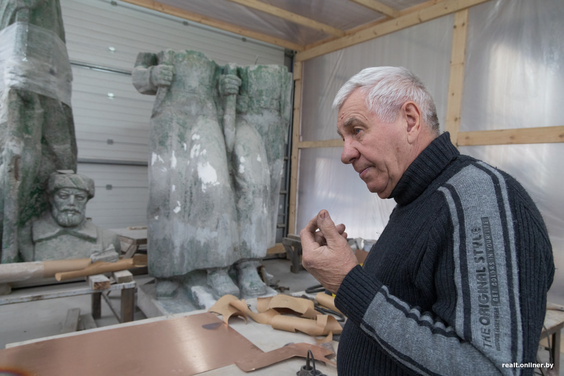 — За 40 лет мы с ним ни разу не поругались, — улыбается минчанин. — При этом оформили не один десяток фасадов и интерьеров, восстановили сотни скульптур и монументов. Его нет уже больше 20 лет, а я все так же продолжаю его дело. Правда, заказов стало меньше. Сейчас, например, пытаемся продлить жизнь памятнику погибшим партизанам, который вылепили из бетона еще в 1950-х годах. Больше полувека он простоял в деревне Паулье Ушачского района, на месте братского захоронения. Теперь наша задача — долепить, а затем накрыть памятник медным листом, чтобы он простоял еще долгие годы.
