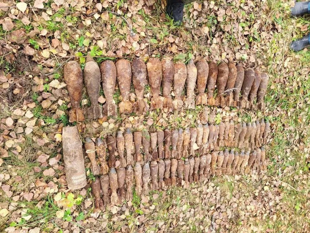 В деревне Поляны в Арсеньевского района взрывотехники Управления противопожарной службы Тульской области обнаружили 17 миномётных мин 82 мм и 56 мин 50 мм, артиллерийский снаряд 76 мм и две гранаты Ф-1.