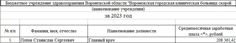 Чуть меньше получает главврач городской клинической больницы скорой (ВГКБСМП № 8). Зарплата Станислава Попова — 208 361 рубль.