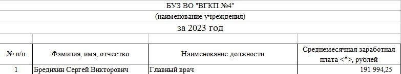 Менее 200 000 получает каждый месяц главврач ВГКП № 4 Сергей Бредихин. Его зарплата — 191 994.