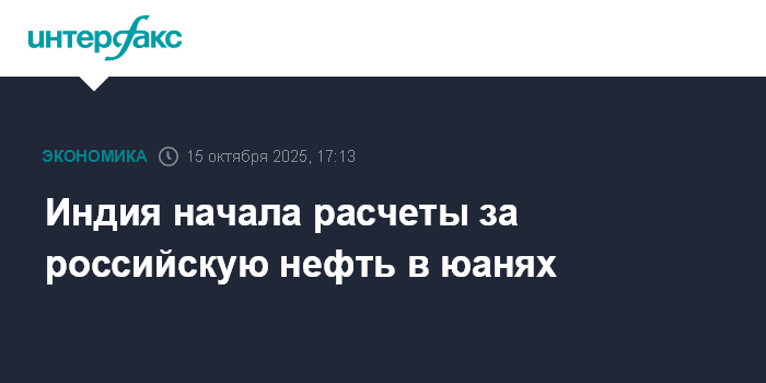 Москва. 15 октября. INTERFAX.RU - Индийские компании начали оплачивать поставки российской нефти в китайских юанях, но процент сделок в этой валюте пока небольшой, сообщил журналистам вице-премьер РФ Александр Новак.