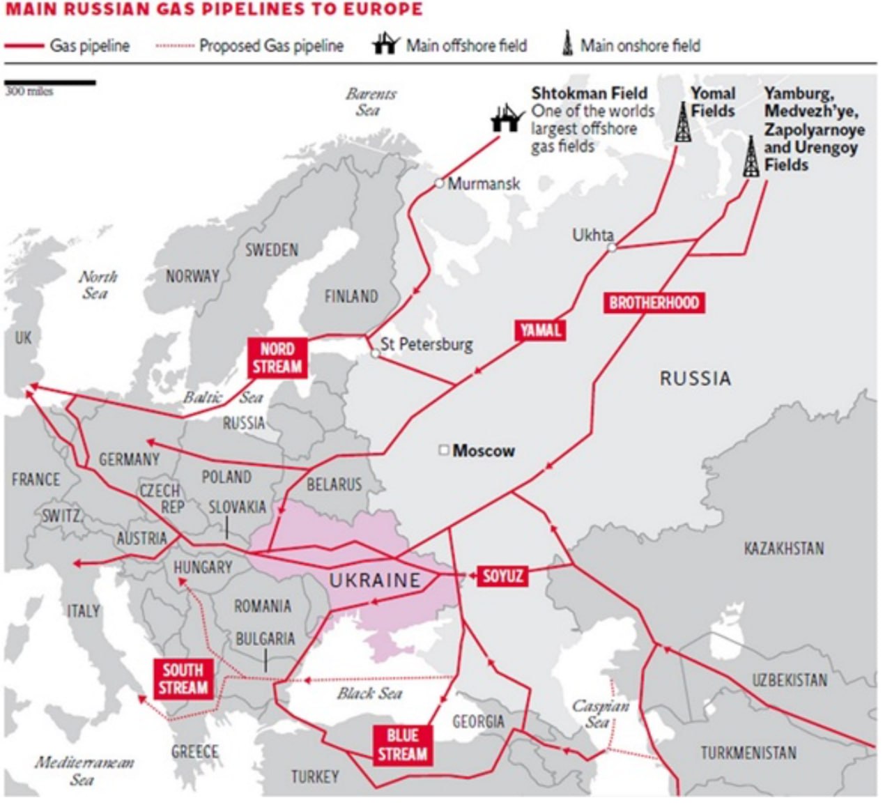 Северные потоки и другие наши поменьше через Украину и Беларусь - это раз, Турецкий поток - это два, собственная добыча в Норвегии - это три. СПГ - это четыре (тут контрольный фактор - морские и океанические пути). Газ из Африки - немного, но есть.
