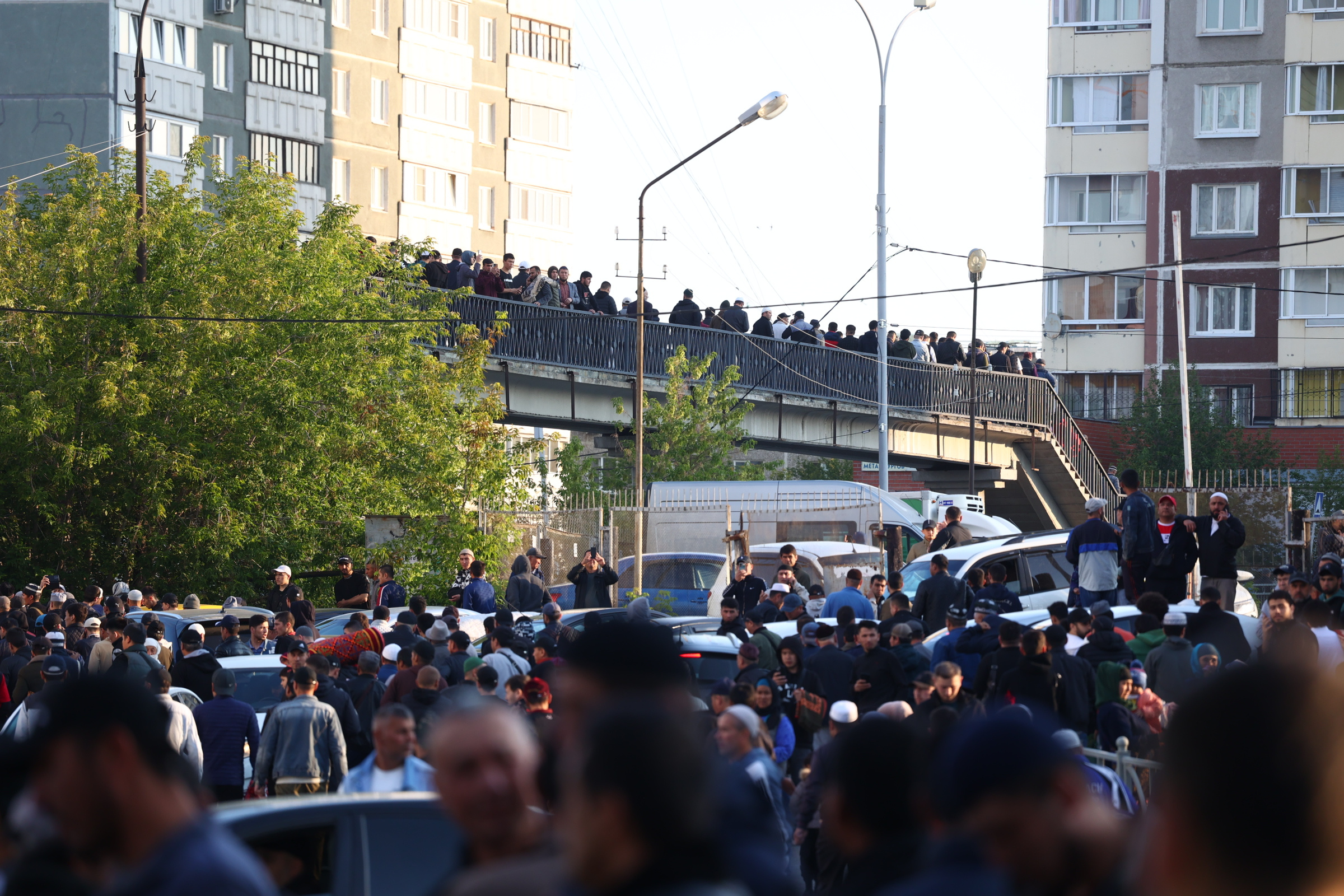 В мечеть все желающие просто не поместились, так что люди быстро заполнили ее двор, а затем — и близлежащие улицы. За порядком следила полиция, перекрыли две улицы: Заводскую и Репина.
