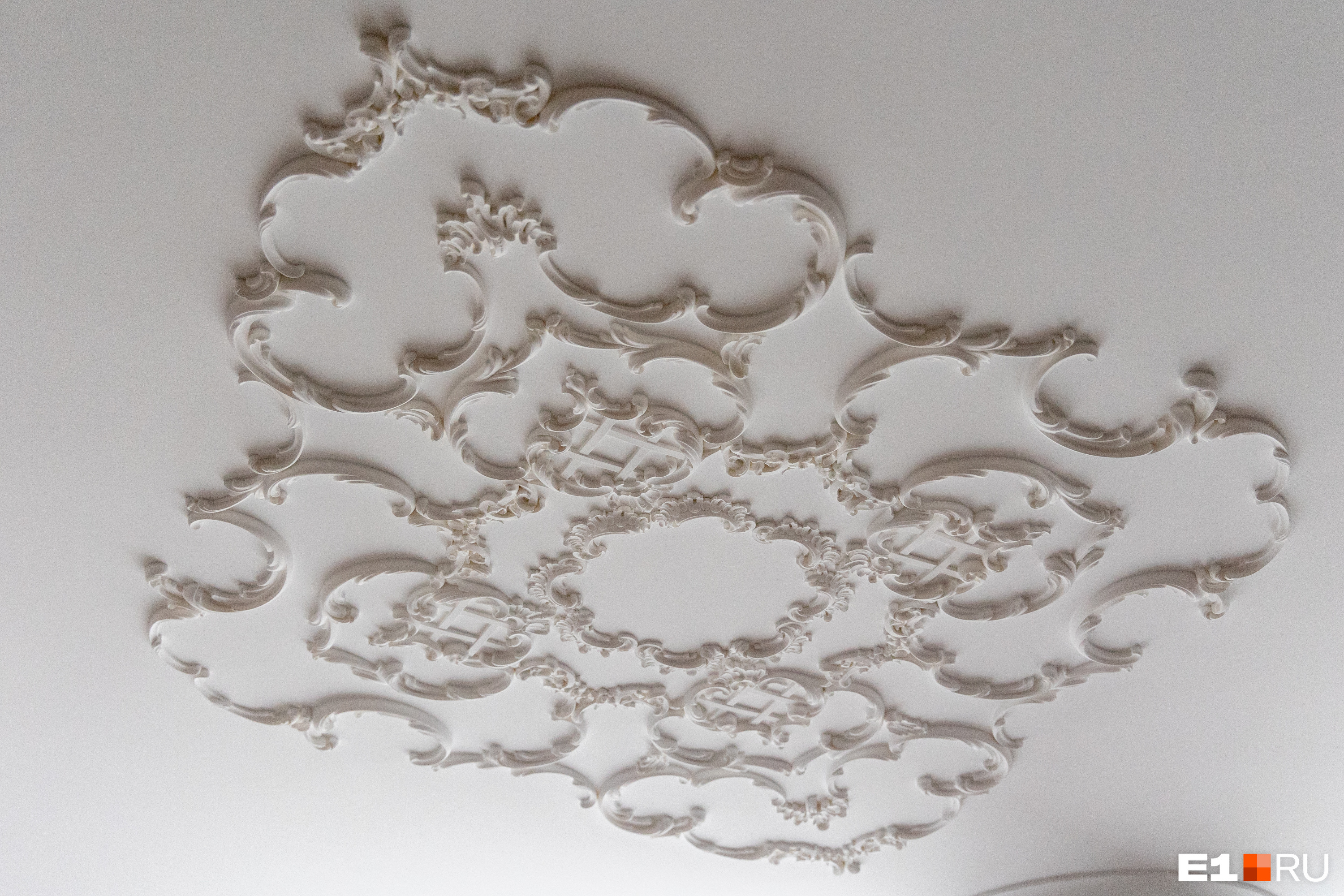 На потолке — гипс и панно ручной работы. В таких дорогих квартирах натяжные потолки не в ходу.
