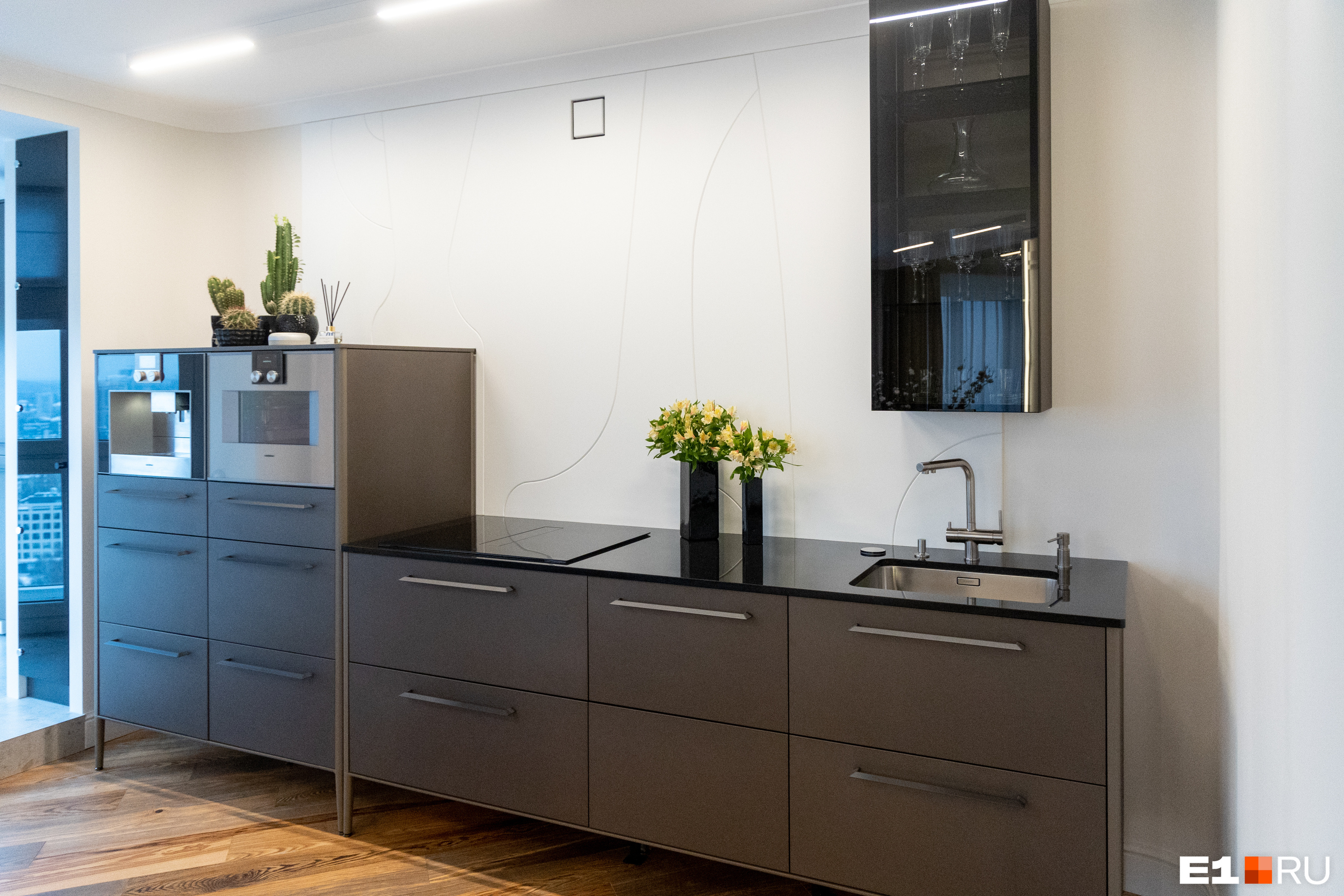 Кухонный гарнитур итальянский и стоит на ножках, чтобы мог проехать робот-пылесос. Даже посудомоечная машина тут подвесная, что редкость.
