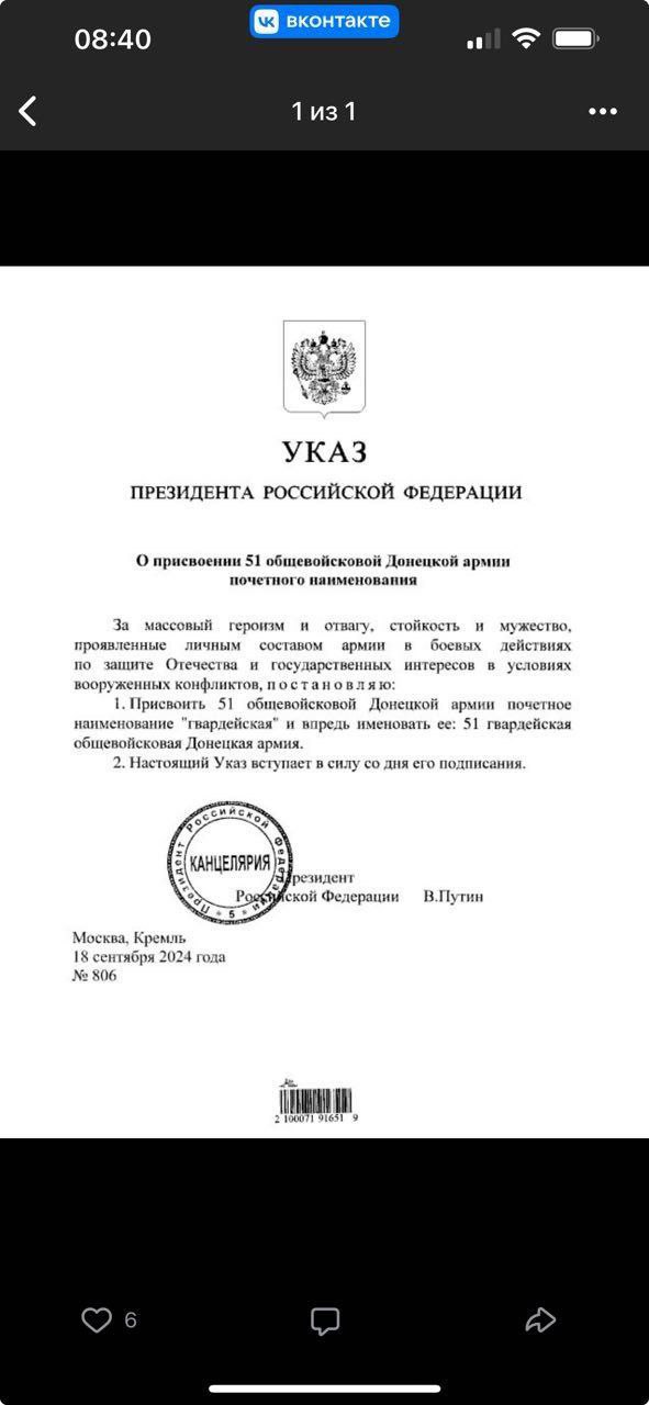 С особой гордостью поздравляю командование и личный состав 51-й общевойсковой армии Южного военного округа с присвоением высокого звания — гвардейская.