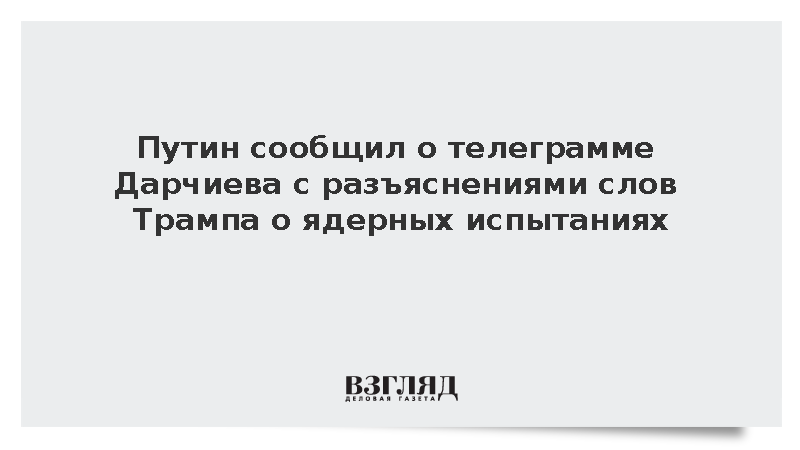 Посол России в США Александр Дарчиев направил в Москву телеграмму с разъяснениями относительно недавних высказываний президента США Дональда Трампа о возможных ядерных испытаниях. Об этом сообщил президент России Владимир Путин на совещании с постоянными членами Совета безопасности РФ, передает РИА «Новости».