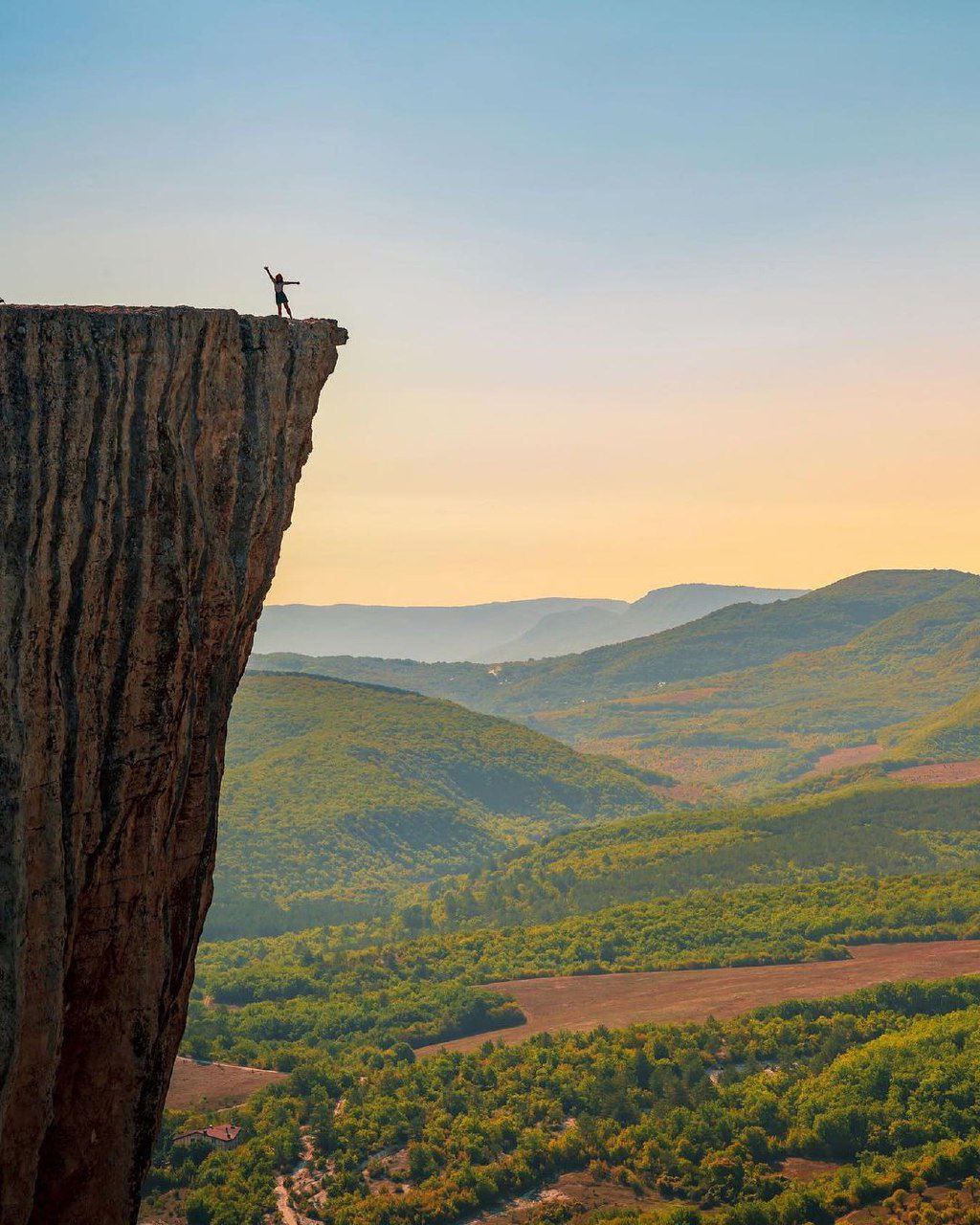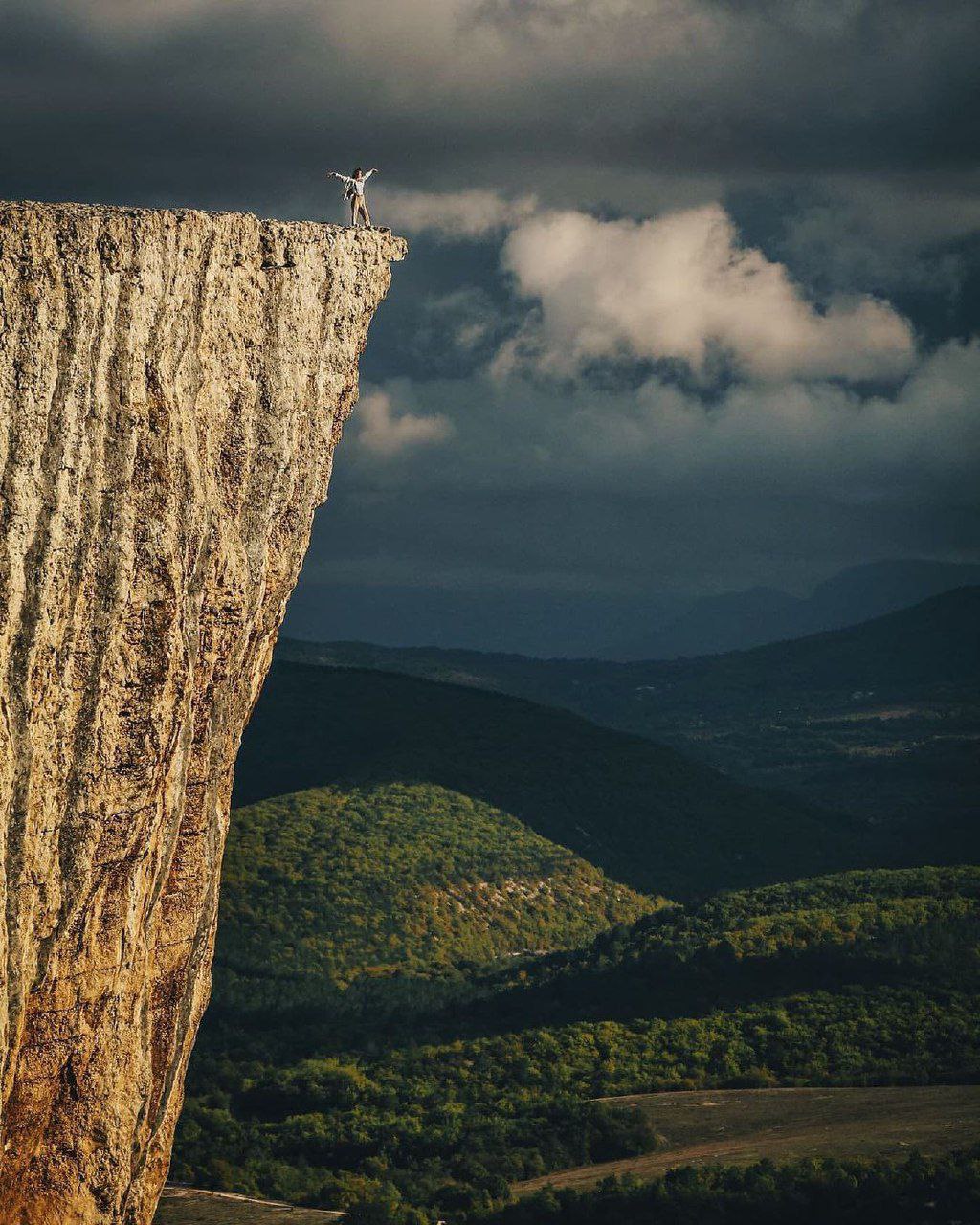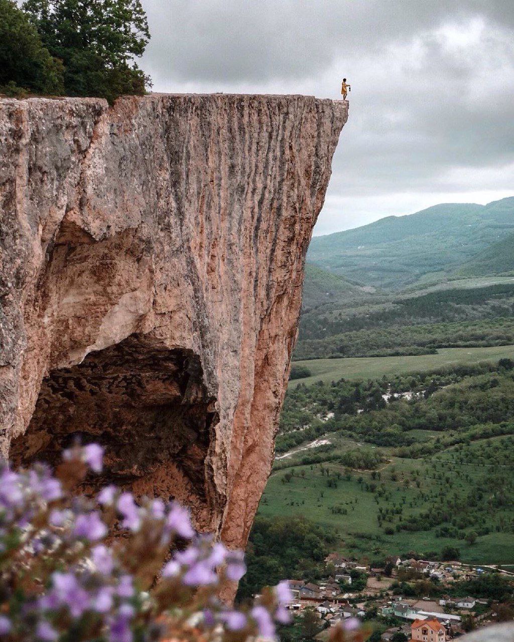 Это место по праву заслуживает внимания любителей гор, опасных обрывов и фотографов. Такой отрицательный угол наклона скалы редко где встретишь, и поверьте, стоять на его краю – дело совсем не для слабонервных.