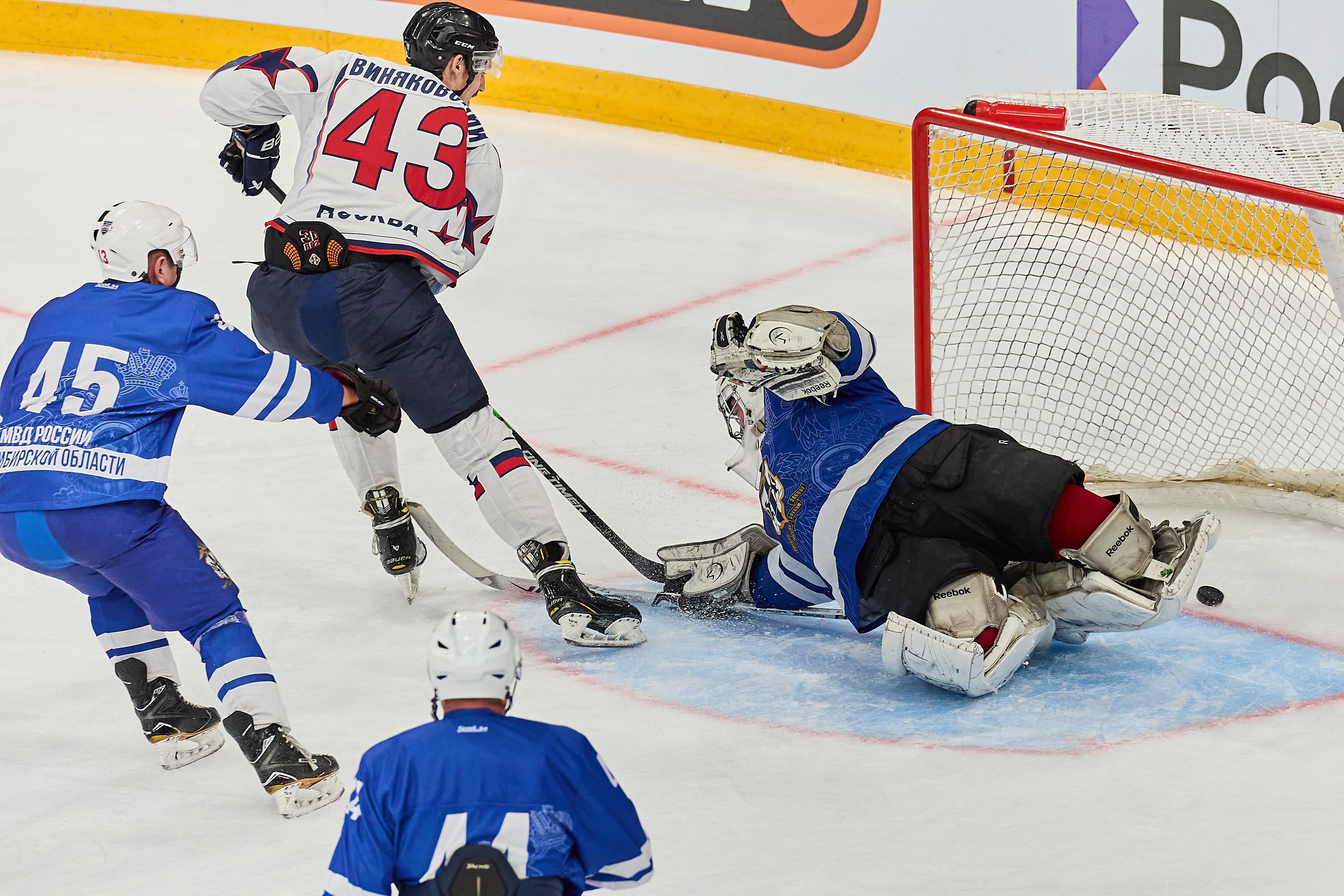 В Новосибирске впервые прошёл открытый турнир МВД России по хоккею с шайбой. Сегодня, 2 ноября, на льду «Сибирь-Арены» состоялся заключительный матч. Фотокорреспондент НГС Александр Ощепков побывал на турнире и запечатлел самые яркие моменты игры.