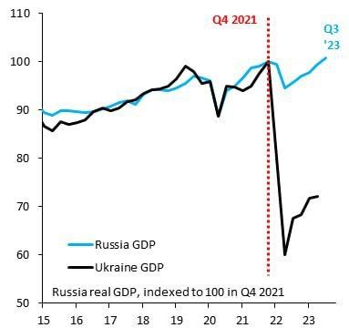Украина перестала публиковать данные ВВП с прошлой периодичностью. Ранее их выдавали с отставанием в один квартал. Теперь за третий квартал 2023 года данные не вышли. Причина понятна.