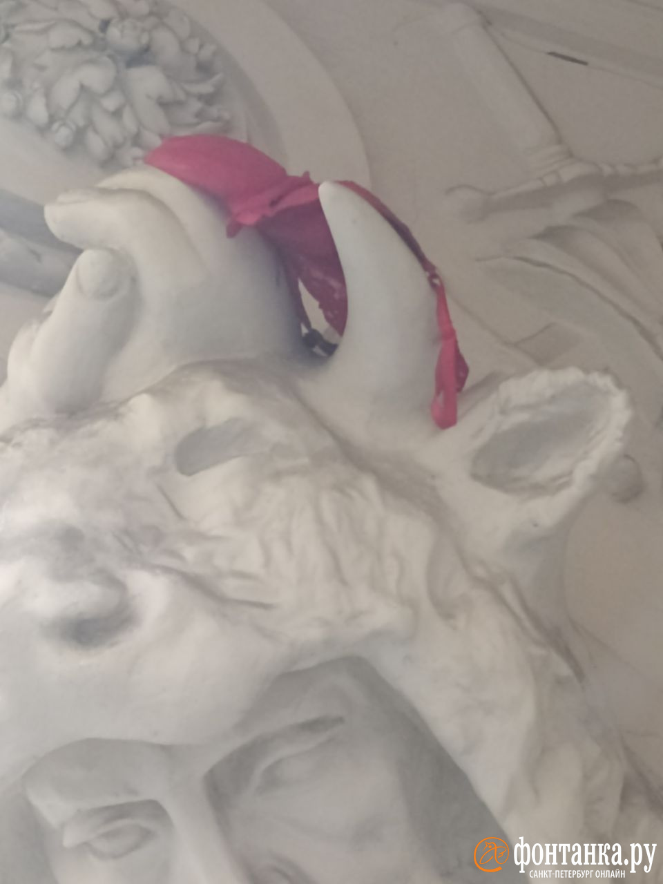 Могучие атланты — один из символов Петербурга. Мускулистые каменные скульптуры, украшающие фасады многих исторических зданий, притягивают к себе взгляды и растапливают женские сердца. Вот и одна особа женского пола не устояла перед атлантами в шкурах на доходном доме Англареса в Саперном переулке. Читательница «Фонтанки» 21 ноября заметила на одном из них предмет интимной части женского гардероба.