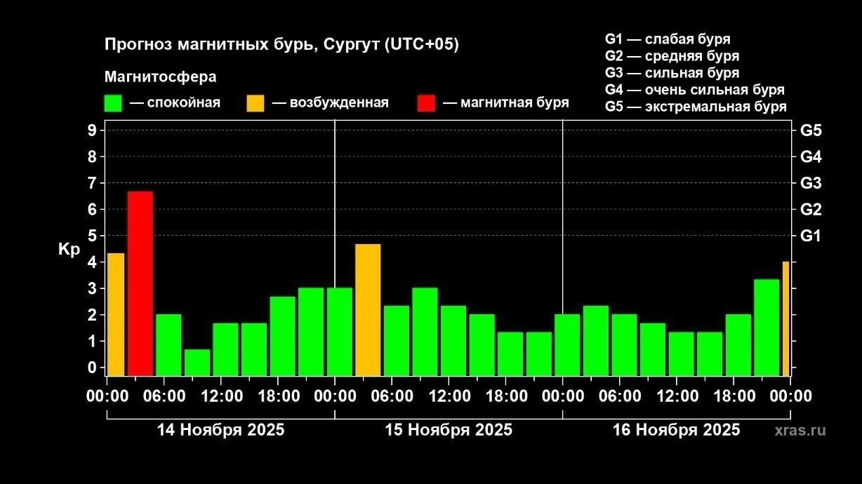 Прогноз магнитных бурь в ХМАО на 15 ноября