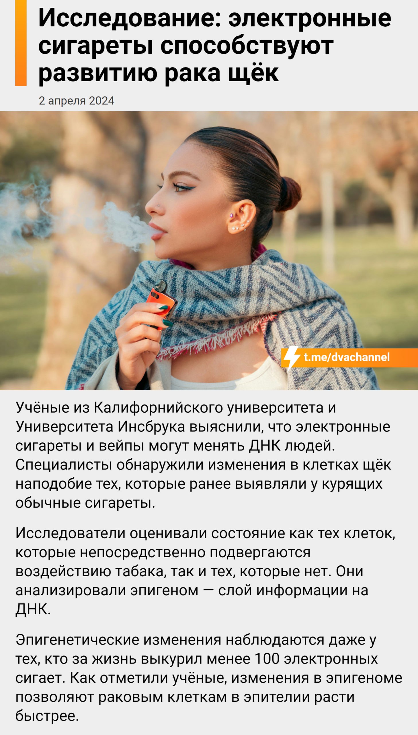электронные сигареты способствуют развитию рака щёк
