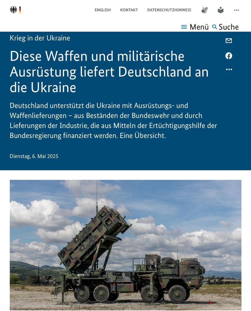 Список военной помощи обновили 6 мая, когда лидера немецкой партии "ХДС" Фридриха Мерца избрали канцлером Германии.