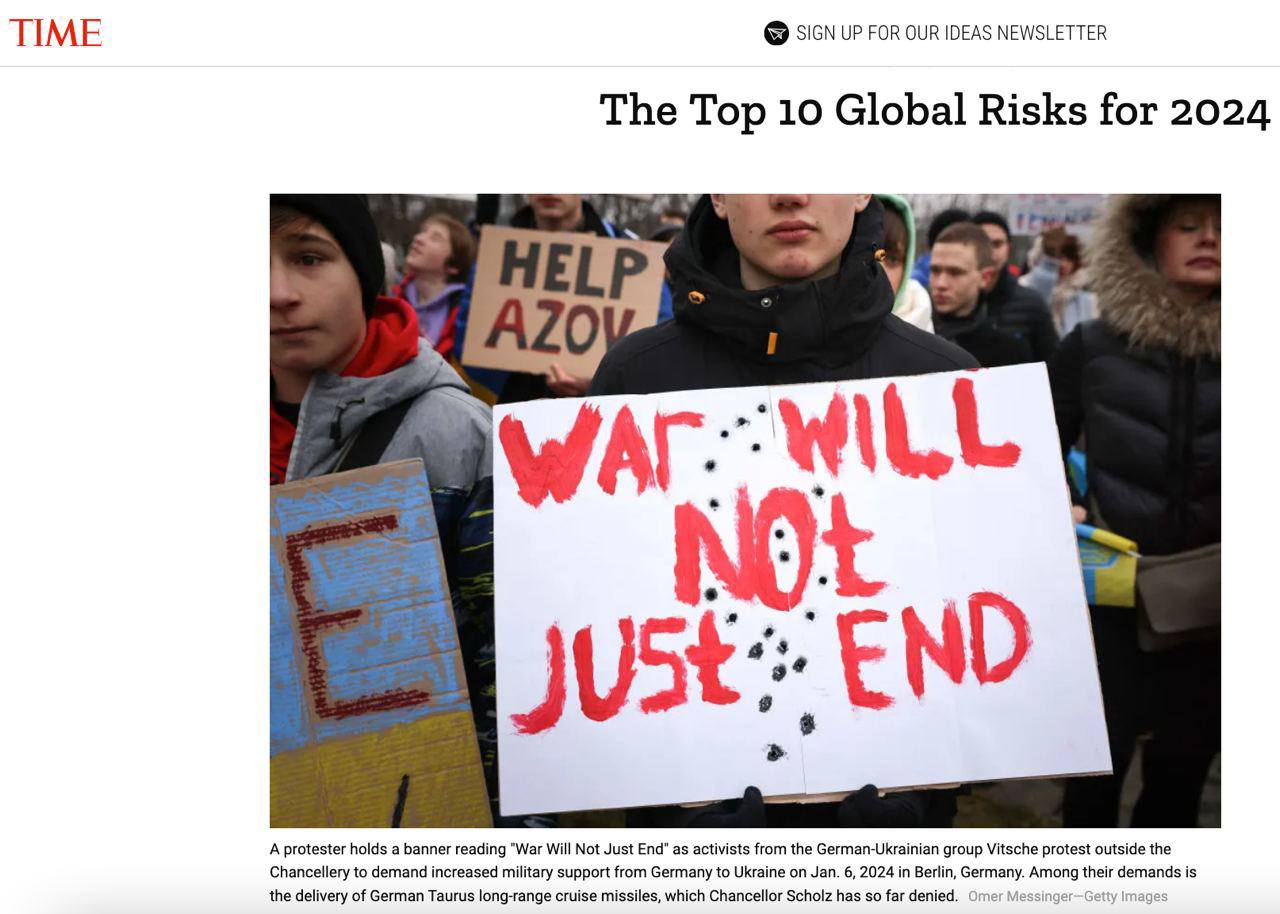 2024 год - переломный момент в войне: The Time назвал в числе главных рисков 2024 года «разделенную Украину»