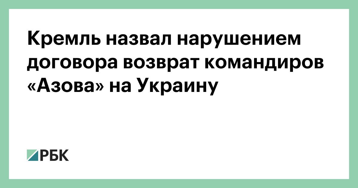 Возвращение командиров «Азова» (признан террористической организацией в и запрещен в России) из Турции на Украину нарушает условия достигнутых соглашений, они должны были оставаться там до конца боевых действий, заявил пресс-секретарь российского президента Дмитрий Песков, передает «РИА Новости».