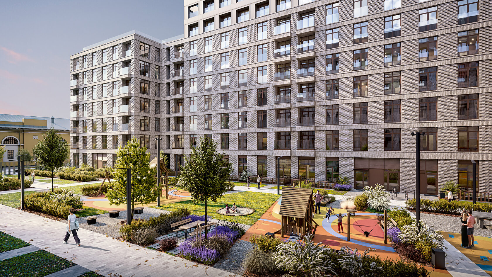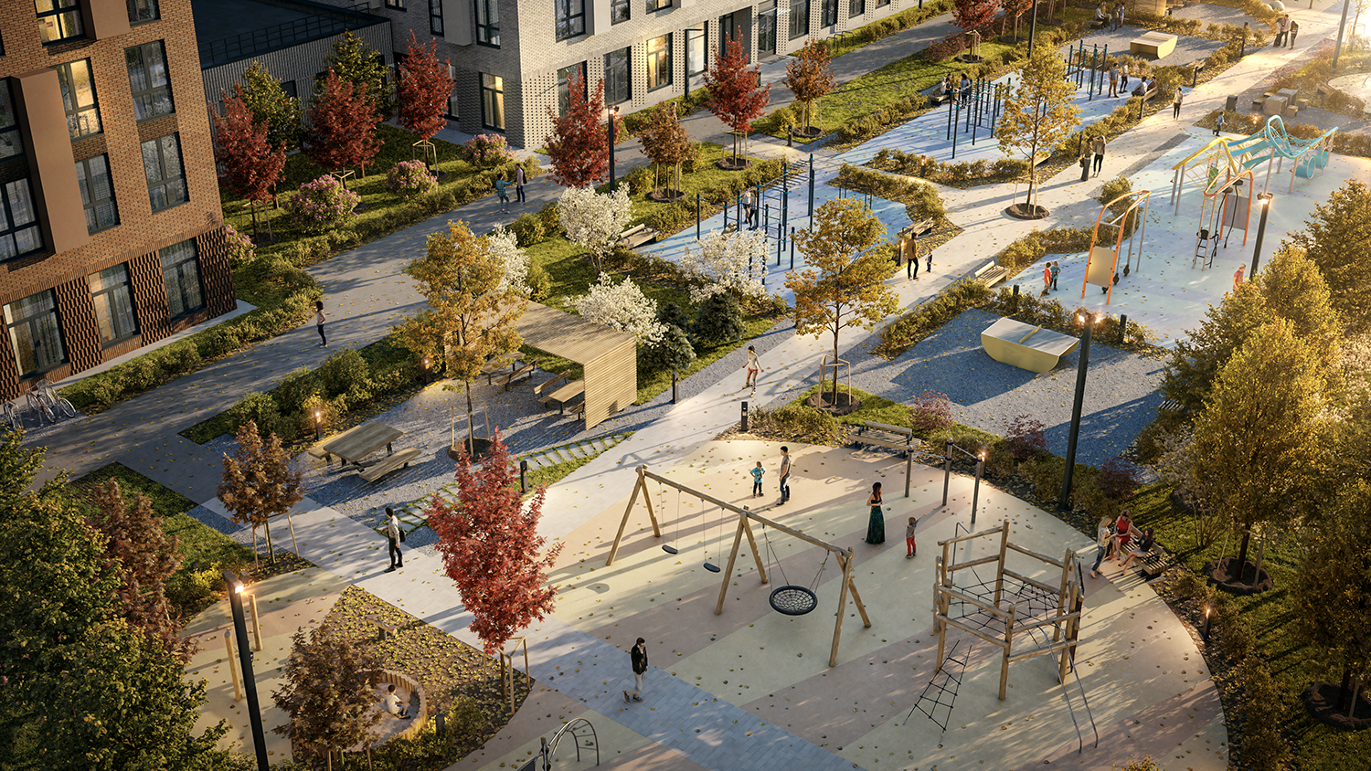 Во дворах проектов девелопер разбивает небольшие парки, где приятно отдохнуть после работы или зарядиться энергией перед новым днем, почитать в тени или позаниматься йогой. Пространство организуется так, чтобы нашлось удобное место для разных занятий: спокойного созерцания и игр с детьми, работы за ноутбуком и бесед с соседями.
