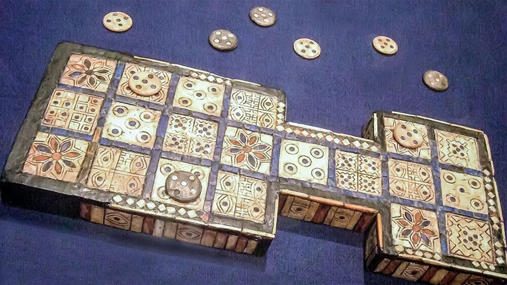 В 1977 году на раскопках кладбища бронзового века Шахри-Сохте на юго-востоке Ирана нашли необычную реликвию: старинную настольную игру, захороненную в богато украшенной могиле. Она представляет собой доску с 20 круглыми ячейками, образованными резным рисунком змеи, 27 геометрических фигур и четыре игральные кости.