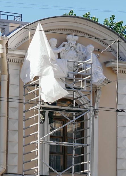 На фасад особняка Урусова после реставрации вернули фигуры младенцев