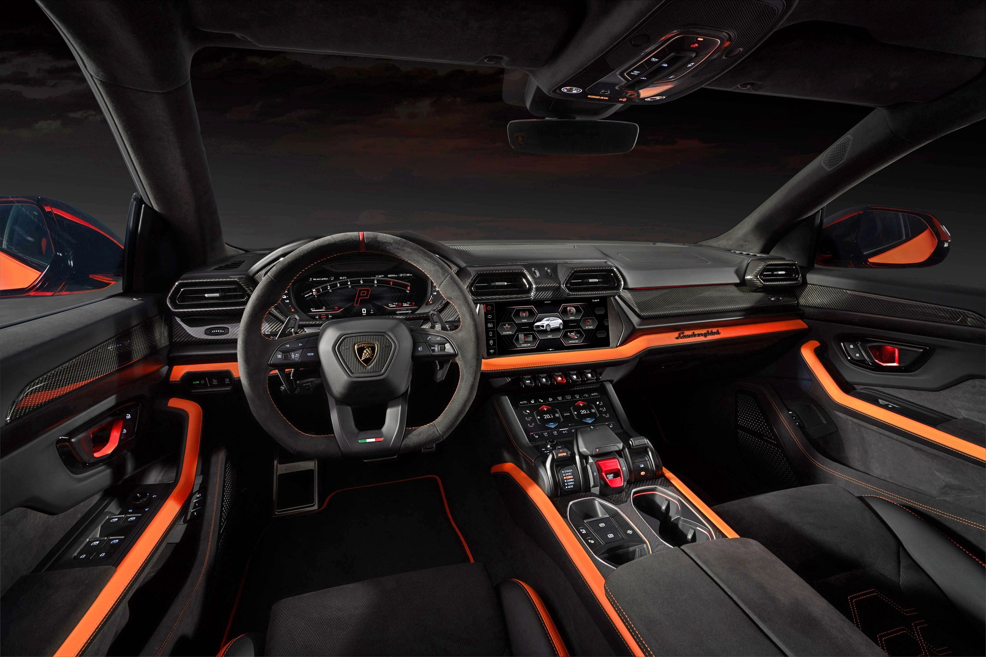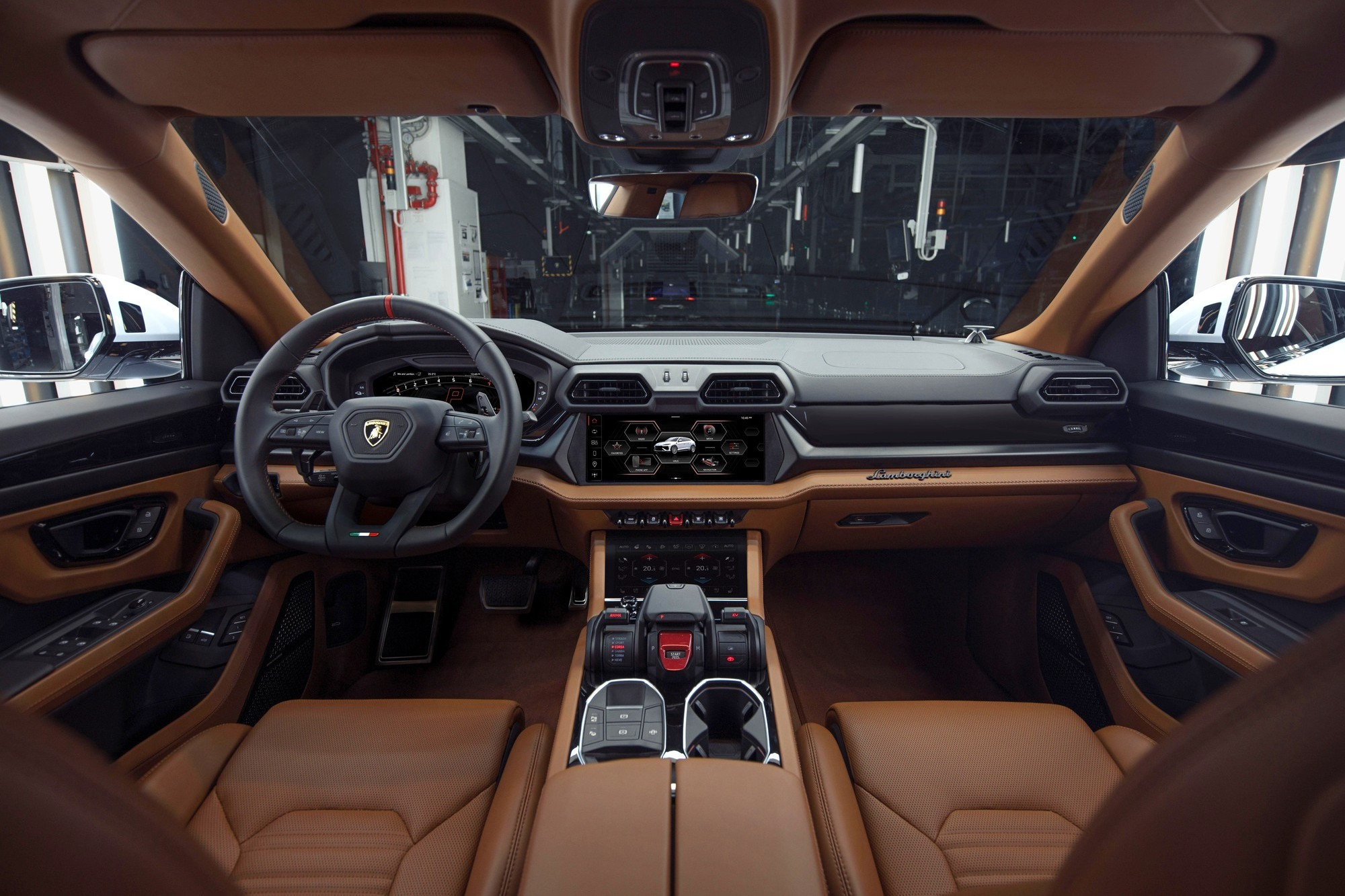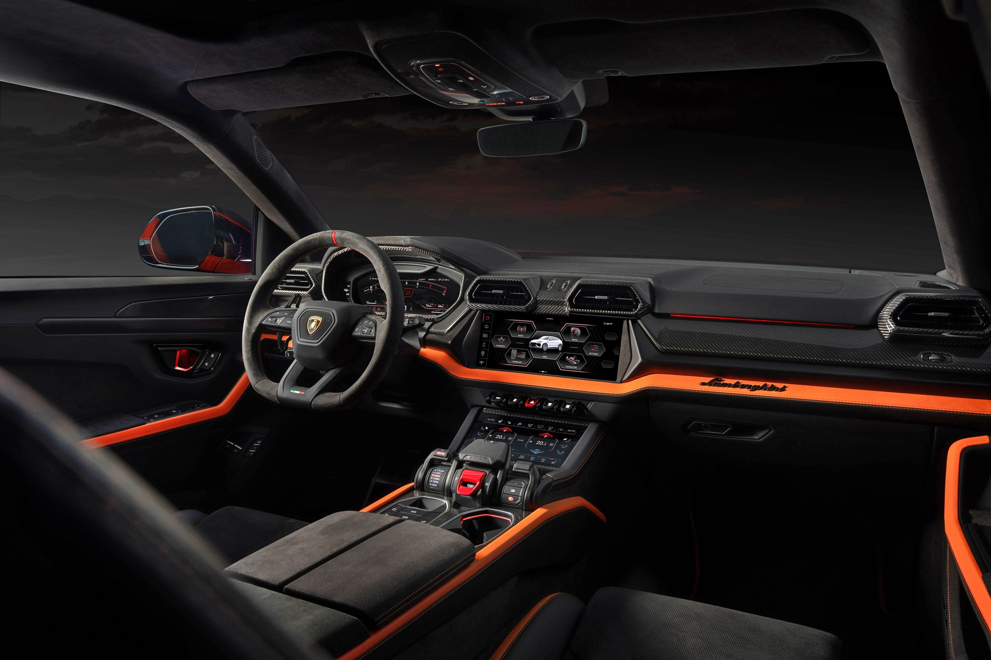 Салон Urus SE имеет новый декор с контрастной горизонтальной поперечиной, разделяющую переднюю панель на верхнюю и нижнюю части. Экран мультимедийной системы увеличен с 10,1 до 12,3 дюйма, под ним разместился новый блок физических клавиш. Графика приборного и мультимедийного экранов обновлена. Воздуховоды получили новые сетки с более крупными ячейками.
